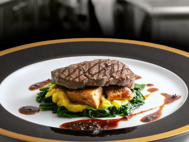 ※牛フィレ肉×フォアグラ×トリュフのアンサンブル。作曲家”ロッシーニ”が愛したホテル ザ・マンハッタンの看板料理がついた全4品のハーフコースの試食。※おひとり様での試食はご遠慮いただいております。