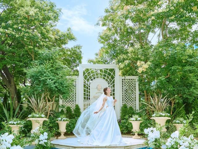 【ドレス試着体験】新作ドレス入荷を記念してドレス試着にご案内。館内にはフォトスポットも沢山。緑いっぱいガーデンや自然光差し込むチャペルに映えるとっておきの1着をご提案。組数限定の試着会なので必ず予約を