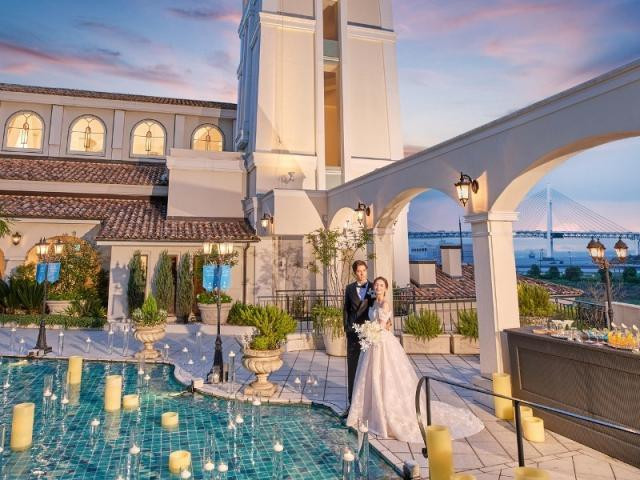 【みなとみらいのロケーション&ウエディングの街を体験】ベイブリッジや海を眺める最上階のガーデンや挙式、大階段、ガーデン付きの4邸宅など海外がテーマのウエディングタウンを実際に体験して。
