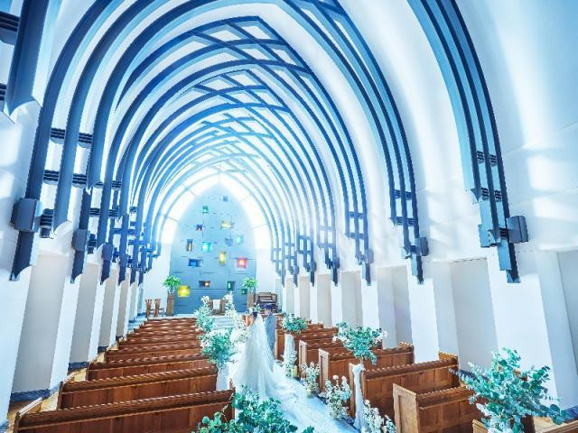 | おすすめ ポイント | アーチ型の天井が印象的な壮大なチャペル『セント・ナインミューズ』は、その名のとおり9人の女神が見守るチャペル。14mのバージンロードと煌めくステンドグラス、ゴスペル聖歌隊の生演奏で感動挙式を。 |