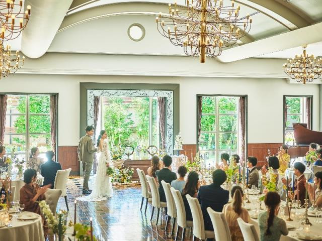 《憧れの結婚式のイメージが膨らむ*演出&貸切W体験》プライベートガーデン付きの全天候型ハウスを二人とゲストで1組貸切♪ガーデンと直結した開放的な空間で二人の希望に合わせたコーディネートや演出をご提案*