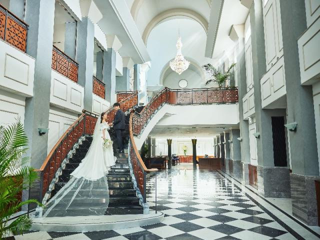 おすすめ ポイント | アーチ型の天井が印象的な壮大なチャペル『セント・ナインミューズ』は、その名のとおり9人の女神が見守るチャペル。14mのバージンロードと煌めくステンドグラス、ゴスペル聖歌隊の生演奏で感動挙式を。 |