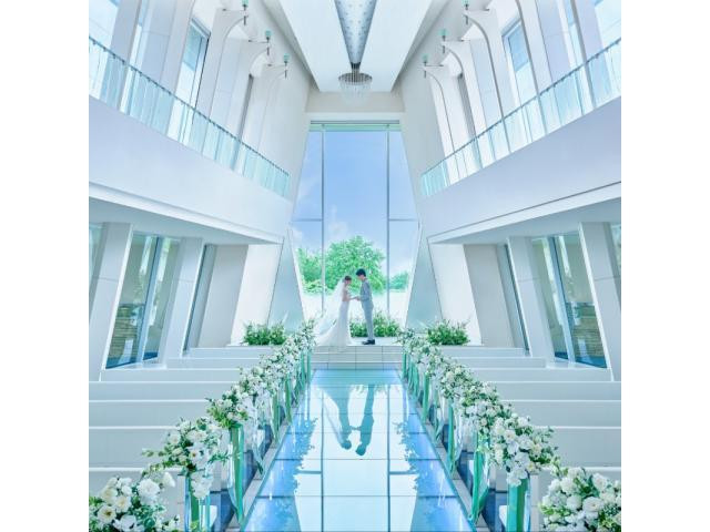 • チャペルがバージンロードに反射して幻想的な雰囲気です。