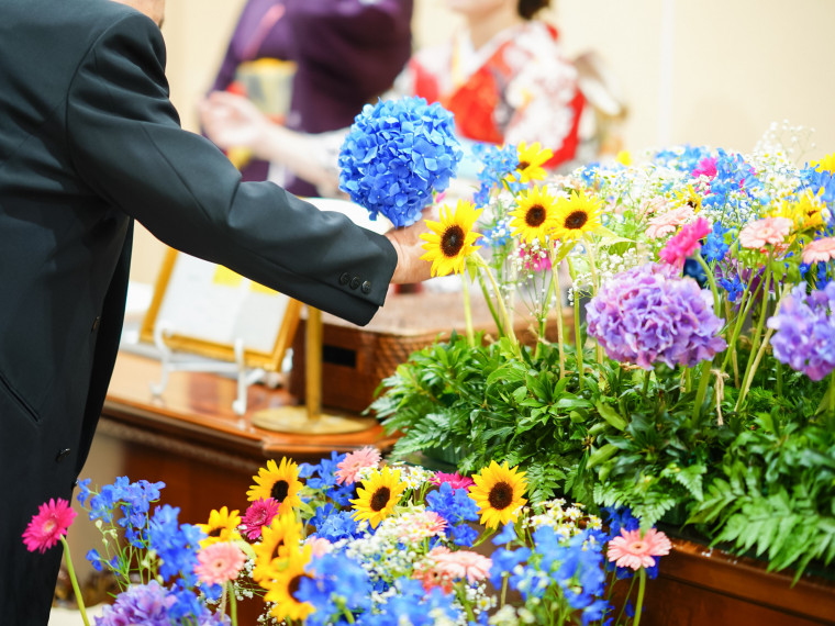 季節の彩りや香りを大切に、会場全体が優しさに包まれるような空間づくりを心がけています。