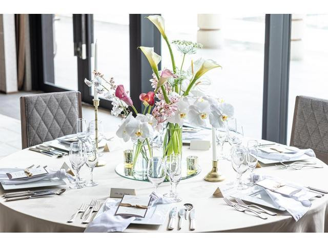【ブリリアントフォールが煌めくチャペル】【天井高8mの開放的なパーティー会場】などエルアリーヴォの魅力をご紹介★上質なインテリアでまとめたロビー・ブライズルームなど写真映えするスポットも!