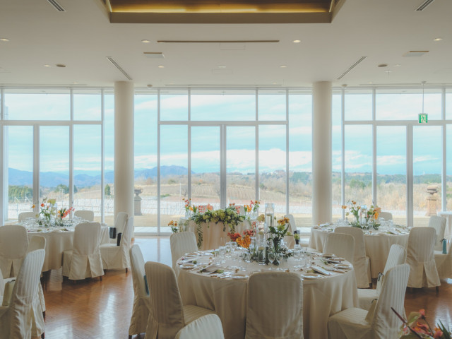 | おすすめ ポイント | 眼前に広がるぶどう畑 自然を感じながら執り行われるウエディングセレモニー |