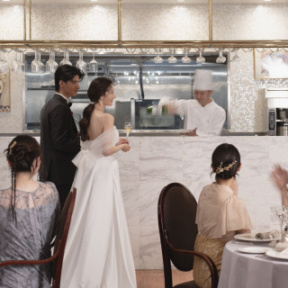 少人数のためだけに造られた『Atelier』にはオープンキッチンをご用意。音・香り・目で楽しませてくれる美食はゲストからも大好評。「次はどんな料理かな」「いい香りが漂ってきた」とゲストの期待値をあげてくれる(着席10~50名)