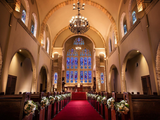 【200年の歴史薫る本格派大聖堂は福岡随一】30mのバージンロード&ステンドグラス/家族に想いを綴るメッセージシアター ※150名収容《海の見えるチャペル「Sea View」 ※96名収容》
