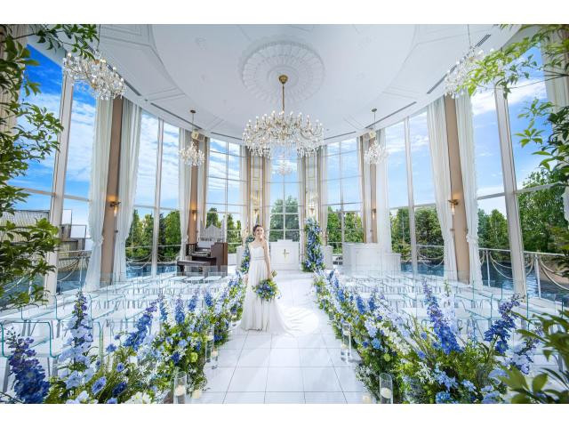【姫路最大級!2大チャペル見学】自然光降り注ぐクリスタルチャペルの“オンディーヌ“とステンドグラス輝く荘厳な雰囲気の“ル・シェール教会“自慢の2大チャペルの挙式を体感!更に人気の演出体験も。