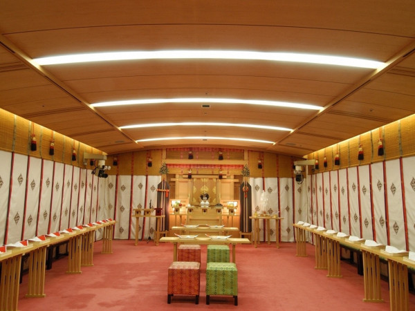 地元、姫路で馴染み深い播磨国総社 射楯兵主神社の御祭神をお祀りする神殿。両家の家族や親族に見守られながら、三々九度で契りをかわす、代々受け継がれてきた日本の伝統に満ちた挙式が叶います。