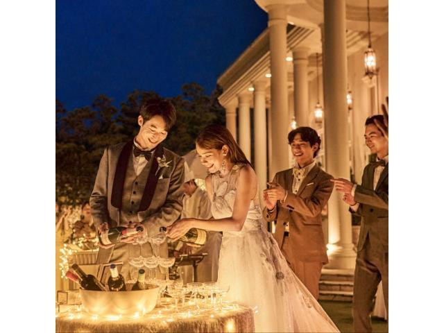 | ガーデン演出 | 有り輝くプールと鮮やか緑と四季折々の花が彩るガーデンでのデザートビュッフェやバルーンリリースなどが人気。絵になるガーデンで、映画のワンシーンのようなひとときを |
