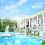 | ガーデン演出 | 有り輝くプールと鮮やか緑と四季折々の花が彩るガーデンでのデザートビュッフェやバルーンリリースなどが人気。絵になるガーデンで、映画のワンシーンのようなひとときを |