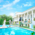 | ガーデン演出 | 有り輝くプールと鮮やか緑と四季折々の花が彩るガーデンでのデザートビュッフェやバルーンリリースなどが人気。絵になるガーデンで、映画のワンシーンのようなひとときを |
