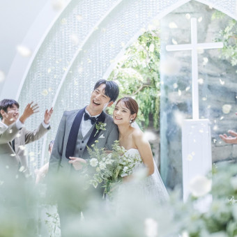 | ガーデン演出 | 有り輝くプールと鮮やか緑と四季折々の花が彩るガーデンでのデザートビュッフェやバルーンリリースなどが人気。絵になるガーデンで、映画のワンシーンのようなひとときを |