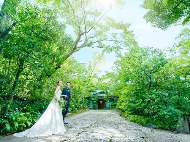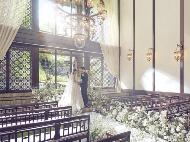 差し込む光が美しい上質な大聖堂&豊かな緑を望めるガーデン付きのチャペルでは、四季が彩る京都の風景までもゲストへの贈り物に。自然に包まれた温かな空間では、和装での人前式も人気