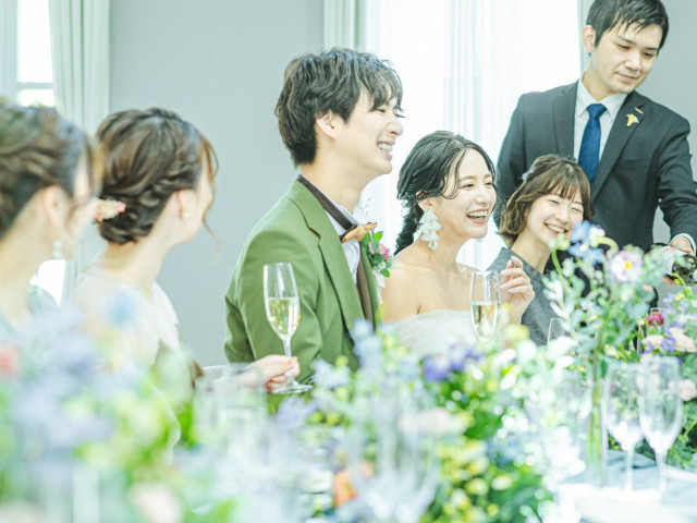 【本番の雰囲気を体感】6~92名まで幅広く選べるレストラン・邸宅は全館貸切でコーディネートの他、円卓や流しテーブルのレイアウトも自由自在。先輩カップルのリアルコーディネート見学でイメージを膨らまそう
