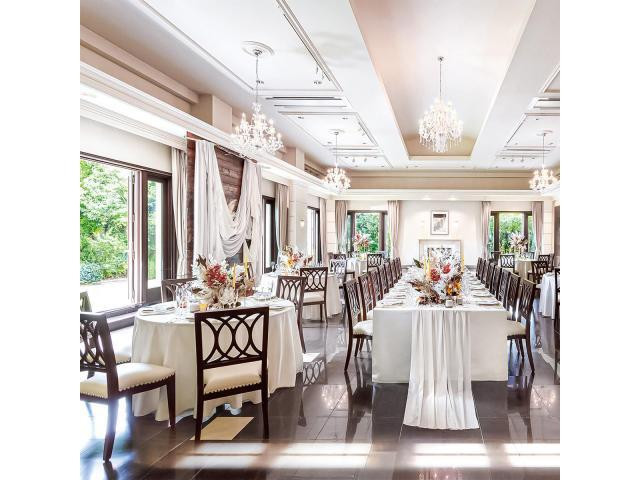 | おすすめ ポイント | 天井高5.5M、収容100名の会場は隣接する芝生の敷き詰めたプライベートガーデンに続き開放感たっぷりの大人可愛いコンセプト