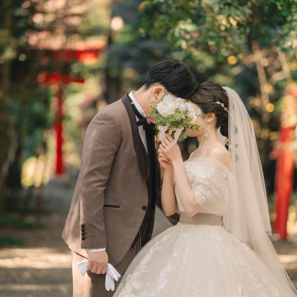 四季折々の花と緑が溢れる冠稲荷神社で写真だけでも撮りたい…という新郎新婦様に一生の思い出を。白無垢と色打掛のお好きな方をお選びいただきロケーション撮影をさせていただきます。ドレスでの撮影も承っております!!