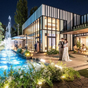 おすすめ ポイント | 音楽とともに連動する噴水演出、熱々の料理を提供するオープンキッチン付きの貸切邸宅♪ライトアップするガーデンはさらに大人っぽく幻想的なウェディングに