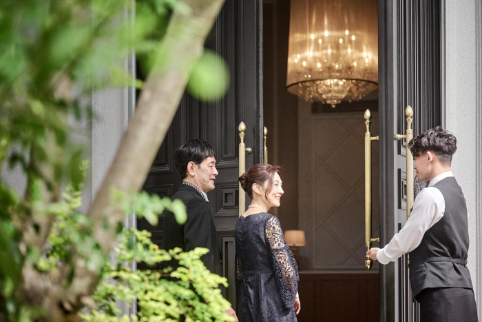 上質で落ち着いた雰囲気のパーティ会場。ふたりらしい装飾や感謝の気持ちを表現した料理に自然と会話が弾む。時間も空間の使い方も自由自在なので、誰もがリラックスできるパーティを。全館貸切なので、控室やロビーもいつでも利用できるのも人気。小さいお子様や、ご年配ゲストの休憩スペースに利用したりと、幅広いゲストにも一日中安心して過ごせる