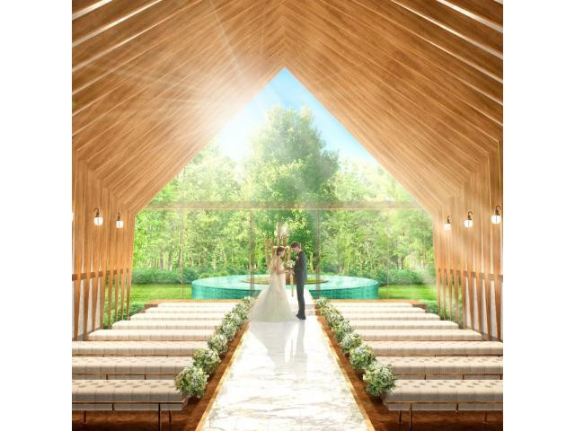 【2023年12月♪新!森のチャペル完成】「森のチャペル」装飾リニューアルが遂に完成♪ガラス張りのチャペルから自然光&緑溢れる瞬間を体感◎<40名様以上/成約特典>挙式料など10万円分プレゼント♪