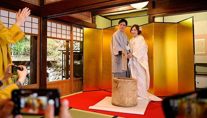 新郎新婦さまやご家族、ご参列の皆さまと一緒にお楽しみいただける演出「お餅つき」。