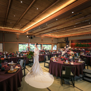 人前式、神前式と選べますが、今回は神前式をみせて頂きました。厳かな雰囲気で竹林のライトが綺麗でした。席がそこまで多くないので、80名だったらギリギリ座れるかくらいのようでした。とても立派な柱が特徴的な素敵な披露宴会場でした大きさは正方形の形のため、お客さんとの距離も近いと感じました。お料理が本当に美味しかったです。元々料亭ということもあり、器が綺麗だったらり、有名な水炊きができたりと素敵なお料理でした。築地駅から徒歩でいけます。東京駅からもタクシーで15分ほどだそうです。とても丁寧に説明してもらいました。絶対に花嫁同士が鉢合わせしないよう限られた敷地内ですが気をつけてるとのことです。料理を1番に考えられている方にはとてもおすすめだと思いました。お庭の素敵さは本当に素晴らしかったですお座敷なので靴を脱ぐ必要があるので、少し寒い印象があります。また車椅子の方がいる場合ら注意がいると思います。詳細を見る (399文字)