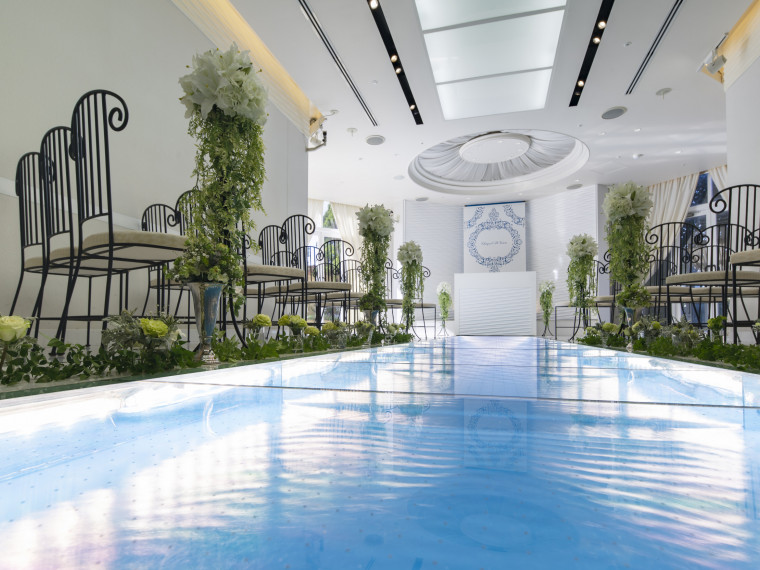 水の流れるチャペルはおふたりの誓いをより一層ドラマチックに演出してくれます。