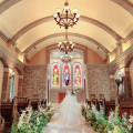 独立型チャペルが素敵。最初に目に飛び込むのは祭壇にあるフランスから寄贈された本物のステンドグラス、そして10mある大理石のバージンロード。天高に響き渡る生演奏の中で、厳かに、そして印象深い挙式が叶う
