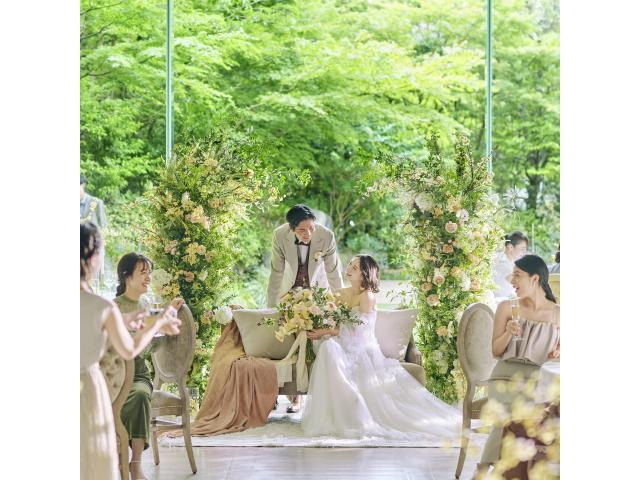 【ドレス試着体験】新作ドレス入荷を記念してドレス試着にご案内。館内にはフォトスポットも沢山。緑いっぱいガーデンや自然光差し込むチャペルに映えるとっておきの1着をご提案。組数限定の試着会なので必ず予約を