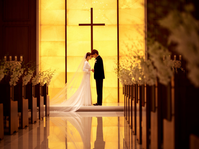 荘厳で温かみのあるグランドチャペルと、天空にいるかのような特別感を味わうスカイチャペルで、ご入場シーンをご体感いただけます。幻想的に響くオルガンの音色と、やわらかな光がおふたりを優しく包みます。