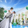 | ガーデン演出 | 有り王道のフラワーシャワーや憧れのブーケトスは勿論、プライベートガーデンだからこそ、フォトスポットで写真撮影やウェルカムパーティーが大人気!プール付ならではのバルーン演出【ドロップ&フライ】もお勧めです。 |