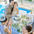 | ガーデン演出 | 有りゲストを囲んでのデザートブッフェや、ゲストからのフラワーシャワーは、映画のワンシーンのよう・・・。 |