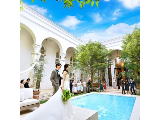 ◆四季を感じる緑溢れるプール付きガーデン、自然光が降り注ぐ開放的な披露宴会場!ゲストへの上質なおもてなしが叶う一組貸切ウェディング!