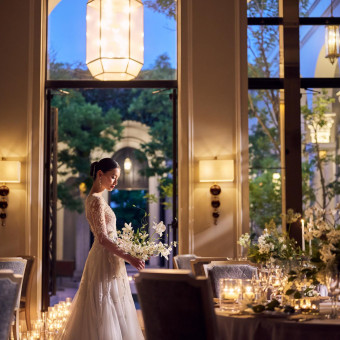 | ガーデン演出 | 有り緑と光の輝きに包まれた開放的なプール付のガーデンでは、ガーデン挙式や、デザートブッフェ、色とりどりでのフラワーシャワー等、非日常的空間で、時間を忘れて楽しんで |