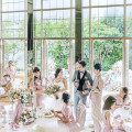 | ガーデン演出 | 有り緑と光の輝きに包まれた開放的なプール付のガーデンでは、ガーデン挙式や、デザートブッフェ、色とりどりでのフラワーシャワー等、非日常的空間で、時間を忘れて楽しんで |