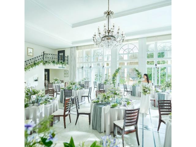 | おすすめ ポイント | 『全面ガラス張り&全開放可能』なバンケットはオープンエアのパーティが叶う◆オープニング登場は内階段から迫力の入場◆天井高く開放感に満ち溢れた空間◆白基調なのでどんな装飾も映える