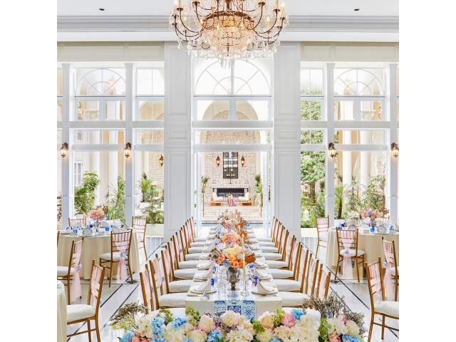 【本番同様のコーディネートを大公開★年間1万組以上の結婚式を手掛ける大手T&Gグループ】貸切の邸宅はレイアウトや装飾、クロスの色もすべてが自由。トレンドを押さえながらふたりに合わせたコーデをご提案♪