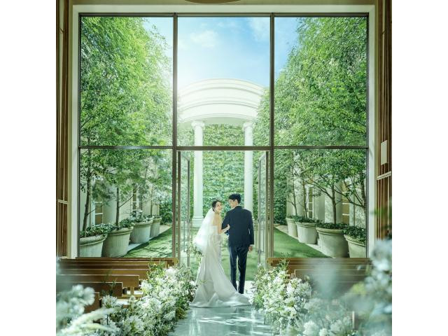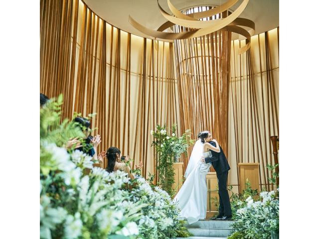 【木・光・緑があふれる天空チャペル】当日の花嫁気分を味わえる!華やかであたたかい雰囲気で本番さながらの挙式体験を♪◎ゲストとの距離が近いのも魅力◎1件目見学特典:挙式料25万円分プレゼント