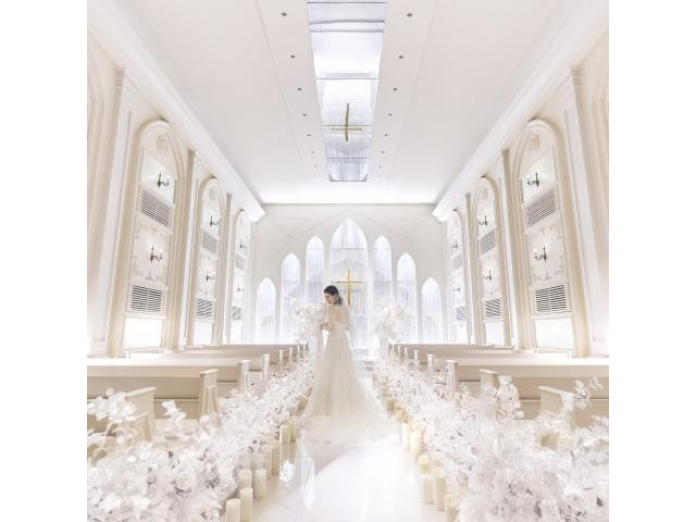 【純白チャペル】当日の花嫁気分を味わえる!数万粒のクリスタルが煌めくチャペルで本番さながらの挙式体験を♪◎ゲストとの距離が近いのも魅力◎【1件目見学特典:挙式料全額プレゼント】