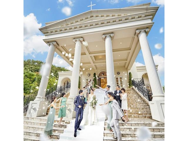 選べる2つのチャペル【白亜の大階段チャペル】か【緑に包まれた森のチャペル】であなたの理想を叶えて♪ハープやバイオリンの生演奏、挙式会場で感謝を伝えるヒストリー映像も必見!絆が深まる感動的な挙式を体感♪