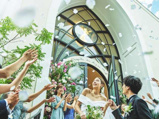 【口コミ7年連続 総合1位受賞】駅徒歩3分の緑に囲まれた独立型教会。生花の香りが漂う神聖なチャペルでは、専任牧師が贈る特別な誓いが叶う。名店レストラン全館貸切×美食のおもてなしは、ゲストからも高評価。
