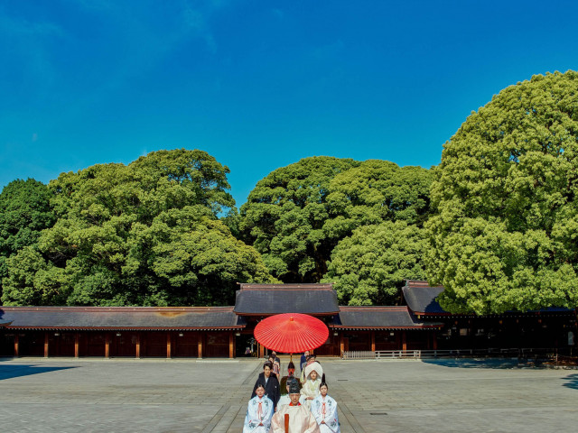 明治神宮の美景を堪能!明治神宮で結婚式をするおふたりのフォトスポットや、付帯設備、式当日のゲスト&親族写真撮影スポットなどもご紹介。