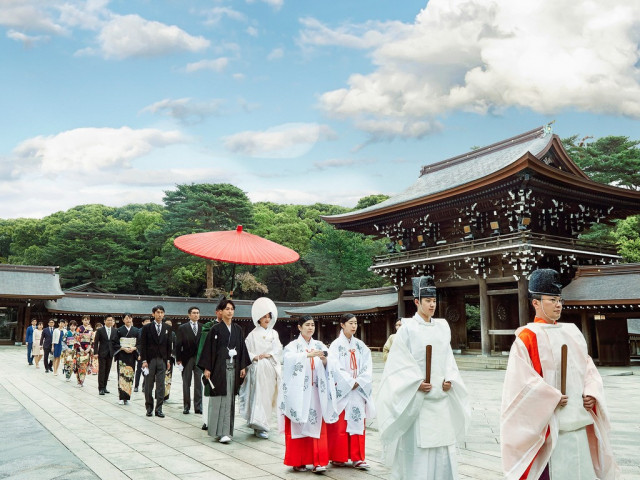 明治神宮の美景を堪能!明治神宮で結婚式をするおふたりのフォトスポットや、付帯設備、式当日のゲスト&親族写真撮影スポットなどもご紹介。