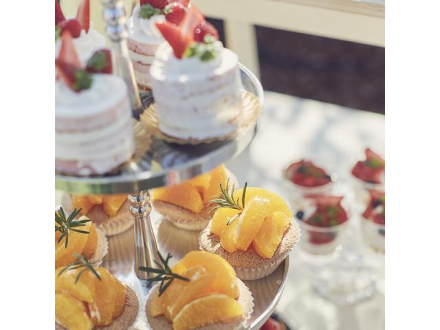 | ガーデン演出 | 有り青空と緑に囲まれたガーデンで、デザートブッフェでゲストをおもてなし |