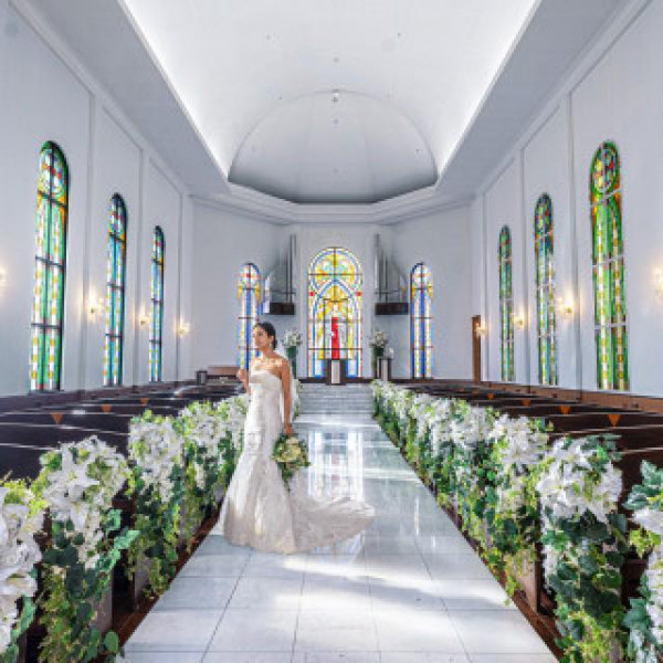 | おすすめ ポイント | ステンドグラスから差し込む自然光が、花嫁をより美しく魅せる。大迫力の生演奏・生歌が感動的な雰囲気を創り上げる。チャペル外の青空と緑に囲まれたガーデンでは、デザートブッフェでゲストをおもてなし。 |
