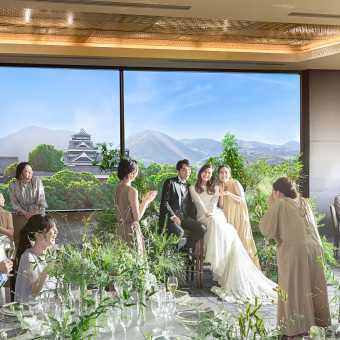 自然光が溢れ緑に包まれたチャペル&熊本城を望む披露宴会場は、伝統とトレンドが調和した特別空間として生まれ変わりました。 時代性に左右されない美しさを感じる熊本のシンボルホテルへ生まれ変わりました