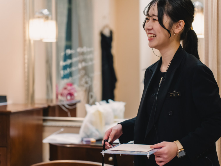 学生の頃に、漠然と「結婚式ってなんかいいな、素敵だな」と思い、結婚式のサービススタッフとしてアルバイトを始めました。ご結婚式をサービススタッフとしてお手伝いさせていただく中で、普段なかなか素直に伝えられない気持ちを親御様やご友人様へ伝えていたり、ご結婚式が結んでお帰りになる際にはゲストの皆様も笑顔になっている姿を見て、もっとおふたりの近くで、おふたりだけの特別なご結婚式を創るお手伝いがしたいと思いウェディングプランナーを目指しました。