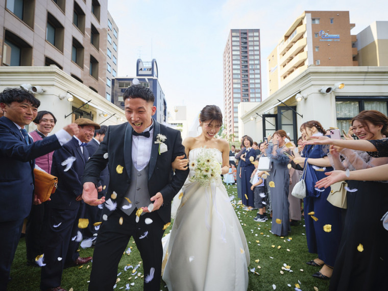 ガーデン演出 | 有りルーフトップガーデンを使ったウエルカムパーティから挙式後のフラワーシャワー、バルーンリリース、披露宴では乾杯やデザートビュッフェなど貸切だからこそ自由にお使い頂けます! |