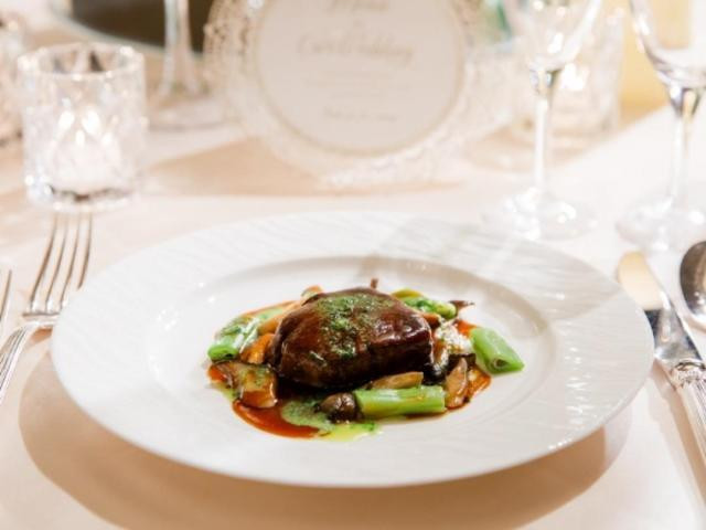 【ゲストも満足◎口コミ好評】受章歴のある総料理長が手掛ける、牛フィレ肉のステーキなどの料理をコーディネートした会場で結婚式の雰囲気と共に堪能。多彩なコースやドリンクについてもご紹介します